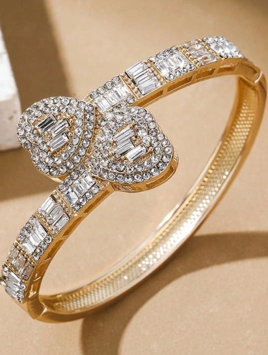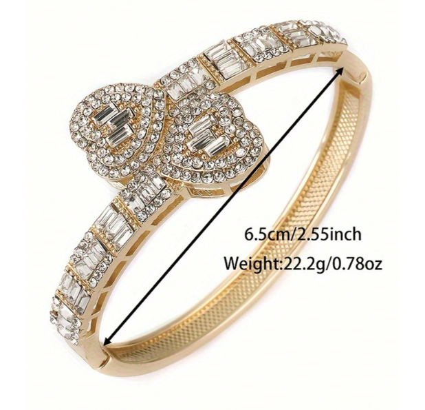 Armband mit offenen funkelnden Herzen in Gold Farbe und Silber Farbe , geeignet als luxuriöser Hip-Hop-Schmuck für Frauen.